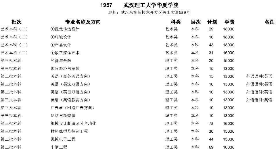 湖北高考網(wǎng)獲悉,2015年武漢理工大學(xué)華夏學(xué)院在湖北省招生計(jì)劃如下: