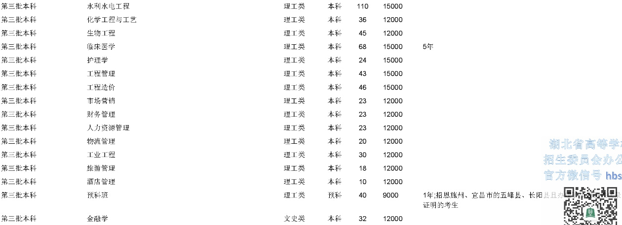 三峽大學(xué)科技學(xué)院2015年在湖北省招生計(jì)劃