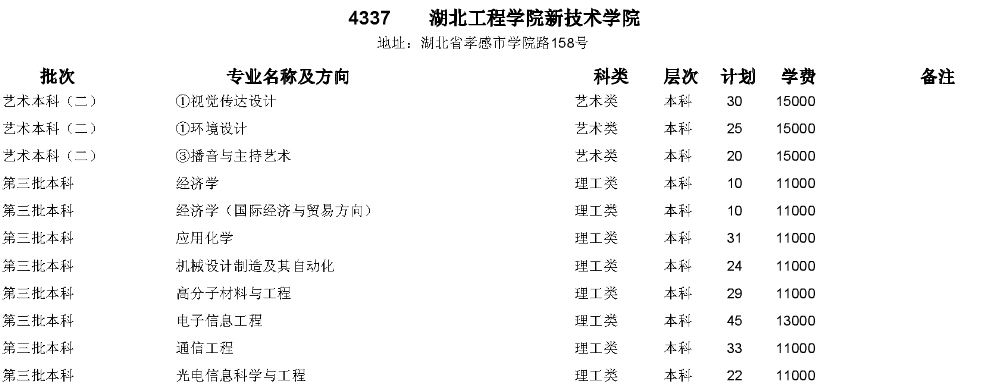 湖北工程學(xué)院新技術(shù)學(xué)院2015年在湖北省招生計(jì)劃
