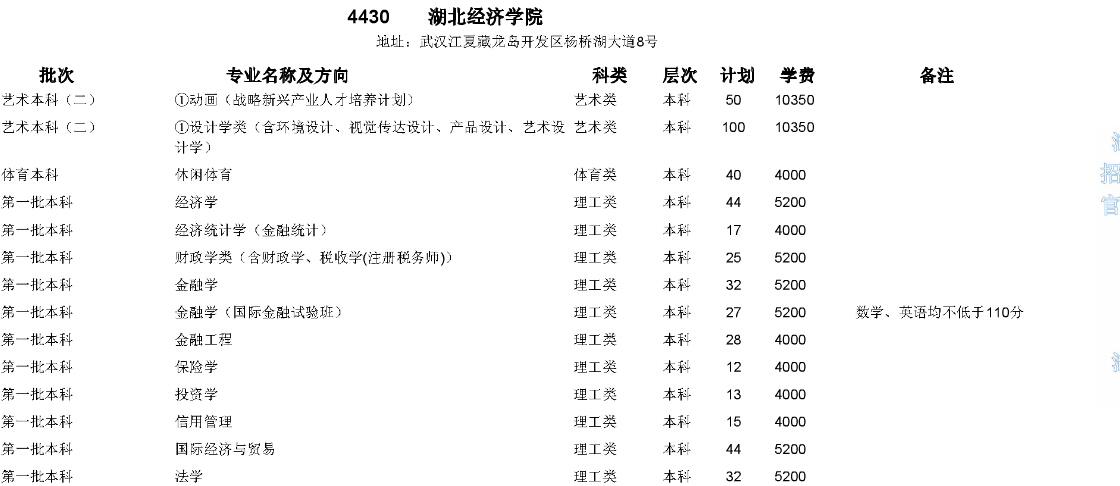 湖北高考網(wǎng)獲悉,2015年湖北經(jīng)濟(jì)學(xué)院在湖北省招生計(jì)劃如下: