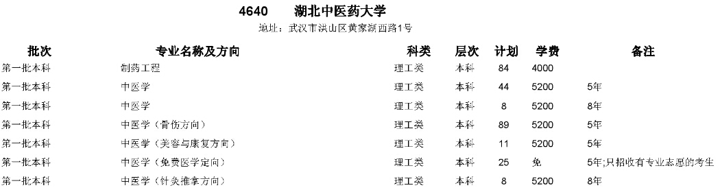 湖北中醫(yī)藥大學(xué)2015年在湖北省招生計(jì)劃