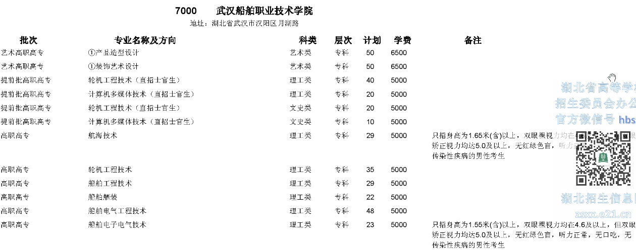 湖北高考網獲悉,2015年武漢船舶職業(yè)技術學院在湖北省招生計劃如下: