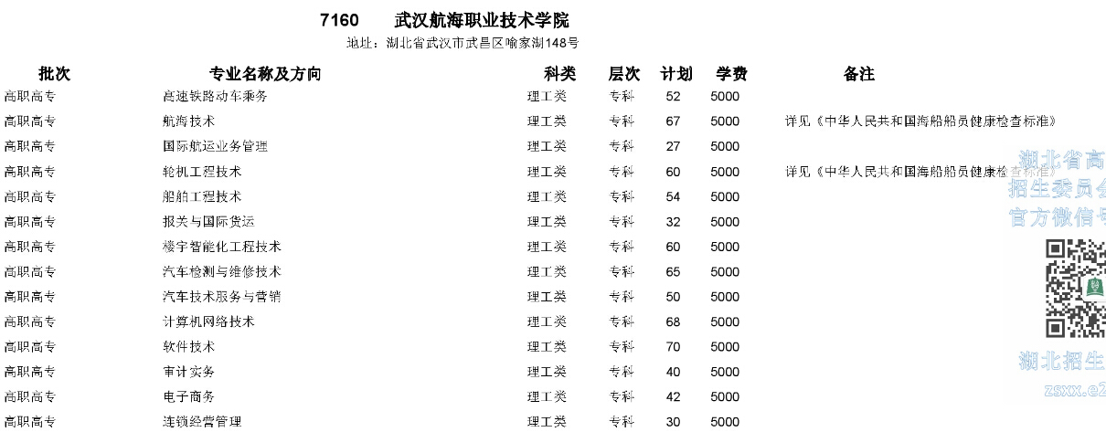 湖北高考網(wǎng)獲悉,2015年武漢航海職業(yè)技術(shù)學(xué)院在湖北省招生計劃如下: