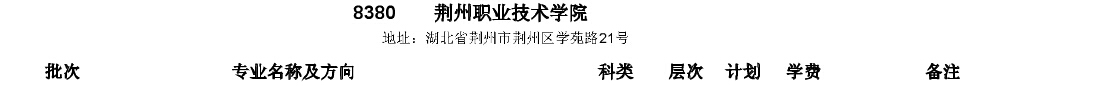 湖北高考網(wǎng)獲悉,2015年荊州職業(yè)技術(shù)學(xué)院在湖北省招生計(jì)劃如下: