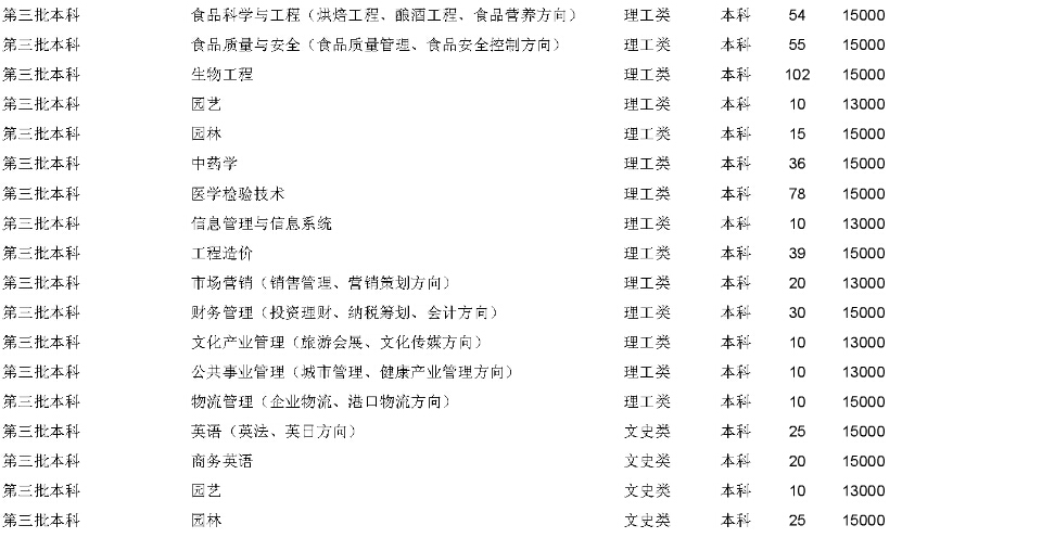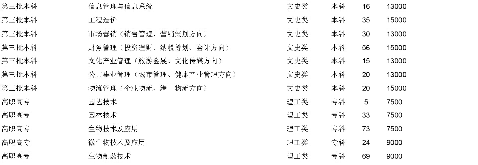 武漢生物工程學院2015年在湖北省招生計劃