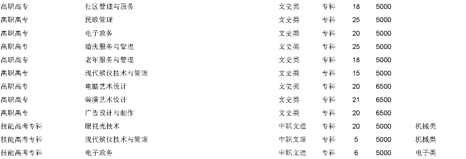 湖北民政職業(yè)學(xué)院2015年在湖北省招生計劃