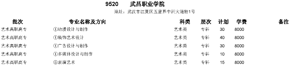 武昌職業(yè)學(xué)院2015年在湖北省招生計劃