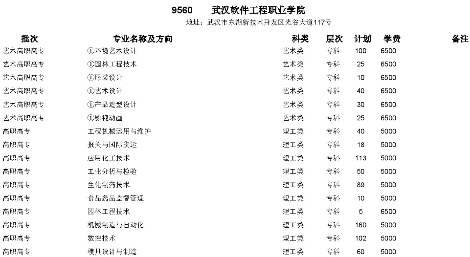 湖北高考網(wǎng)獲悉,2015年武漢軟件工程職業(yè)學(xué)院在湖北省招生計劃如下: