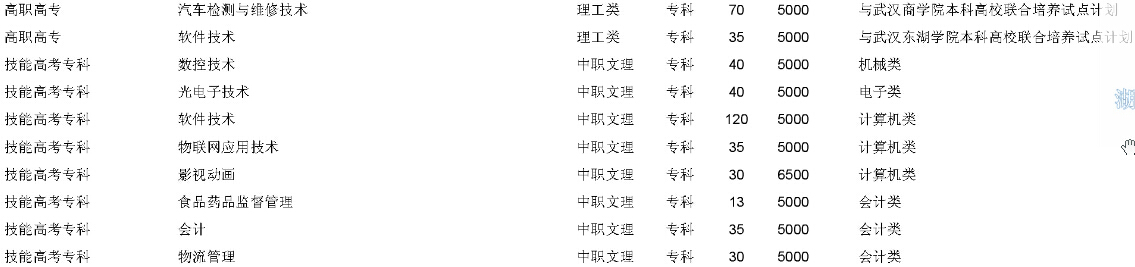 武漢軟件工程職業(yè)學(xué)院2015年在湖北省招生計劃