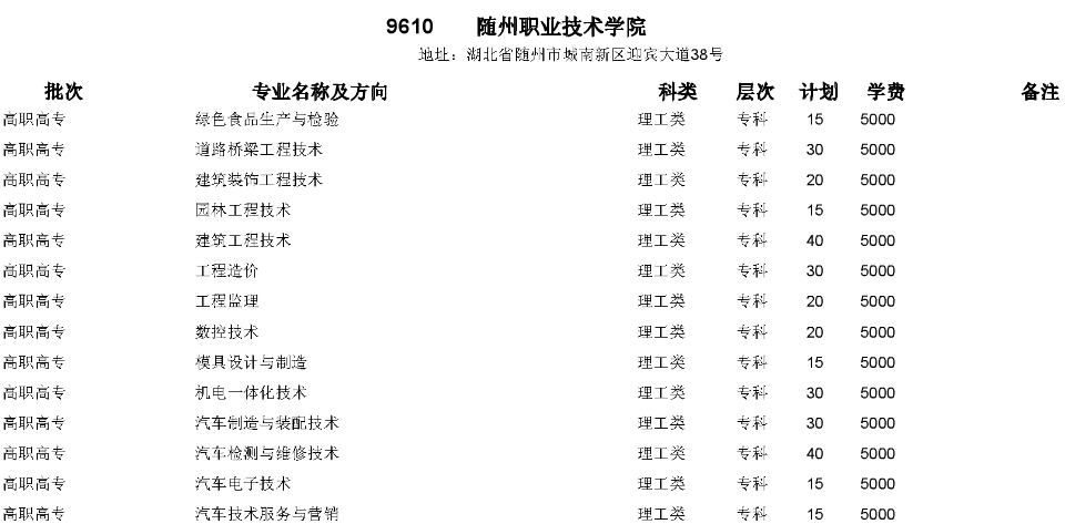 湖北高考網(wǎng)獲悉,2015年隨州職業(yè)技術(shù)學院在湖北省招生計劃如下:
