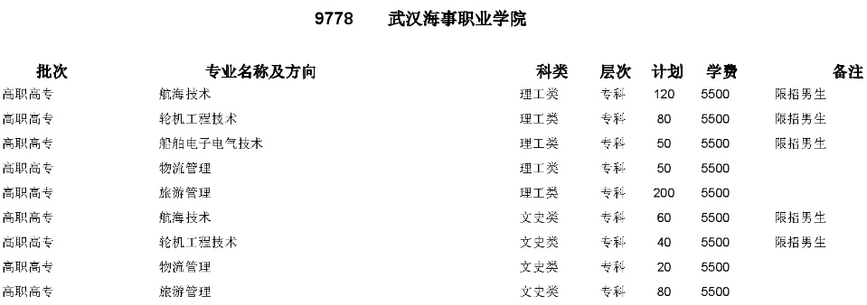 湖北高考網(wǎng)獲悉,2015年武漢海事職業(yè)學(xué)院在湖北省招生計(jì)劃如下: