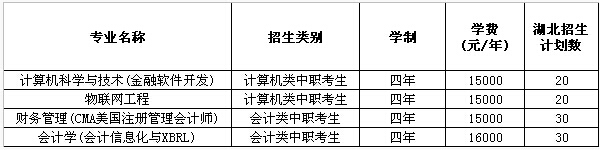 武漢工商學(xué)院2015年中職技能本科招生計(jì)劃