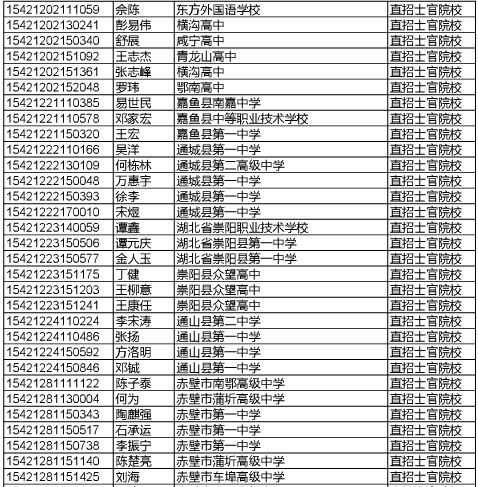 湖北高考網獲悉,2015年湖北直招士官參檢名單如下: