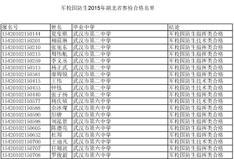 "2015年軍校國防生湖北考生參檢合格名單" 相關(guān)文章推薦