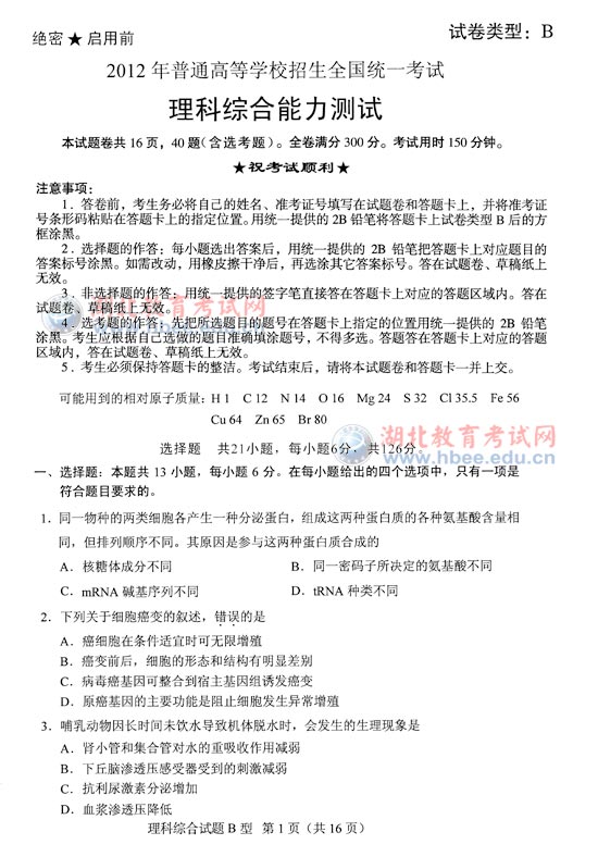 "2012年湖北省高考理綜B卷試題" 相關(guān)文章推薦