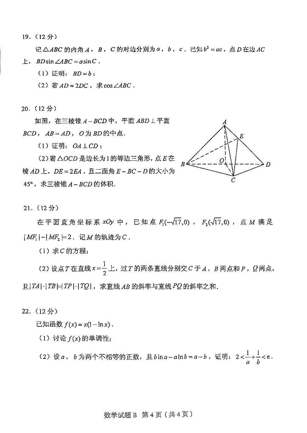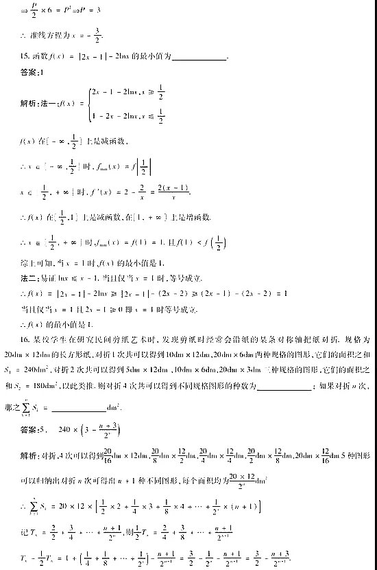 二、2021年湖北高考數(shù)學(xué)參考答案