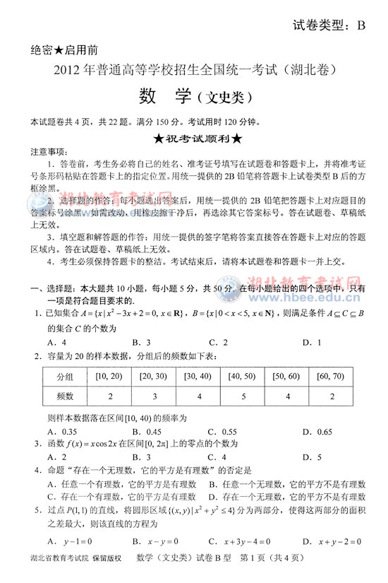 上一篇:2012年湖北省高考數(shù)學文科A卷試題答案