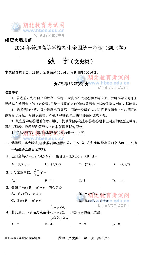 "2014年湖北高考文科數(shù)學(xué)真題" 相關(guān)文章推薦