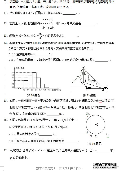 湖北2015年高考文科數(shù)學(xué)真題試卷(官方版)