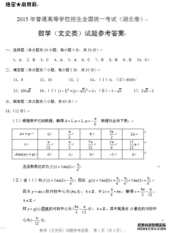湖北高考網獲悉,2015年湖北高考試卷真題及答案已經公布啦!大家在考后放松也別忘記估分哦!以下是2015年湖北高考文科數(shù)學真題及答案官方完整版: