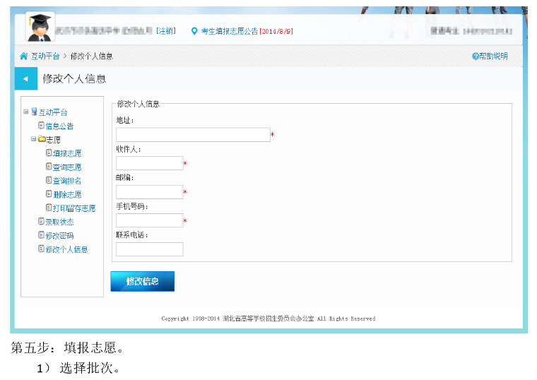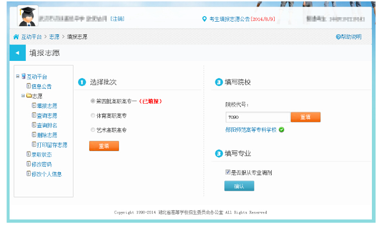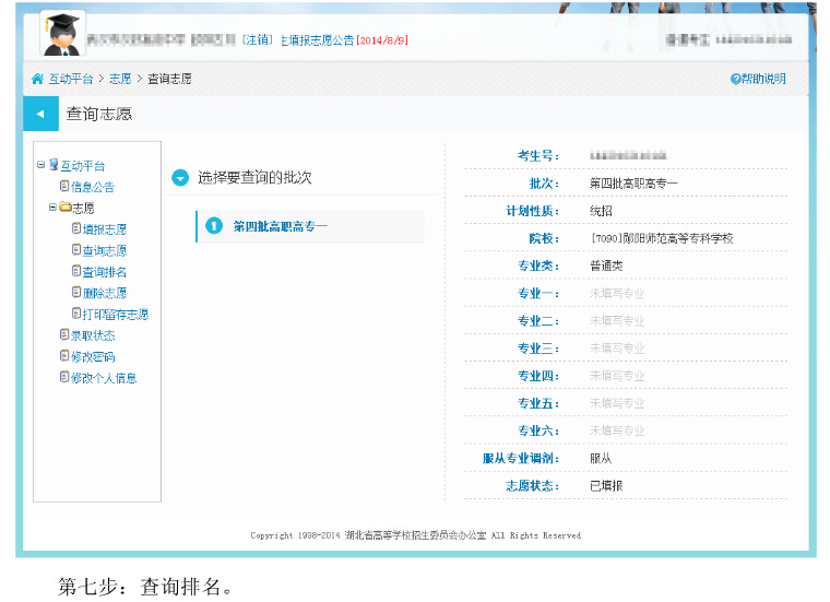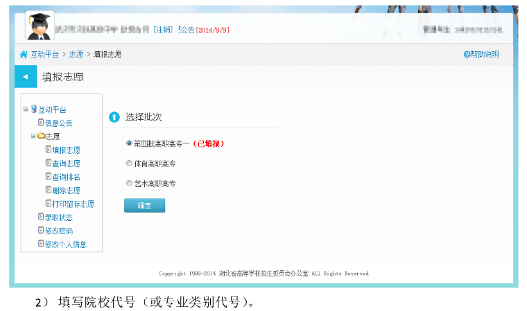 湖北2014年高招高職高專補(bǔ)錄征集志愿填報(bào)系統(tǒng)考生操作圖解