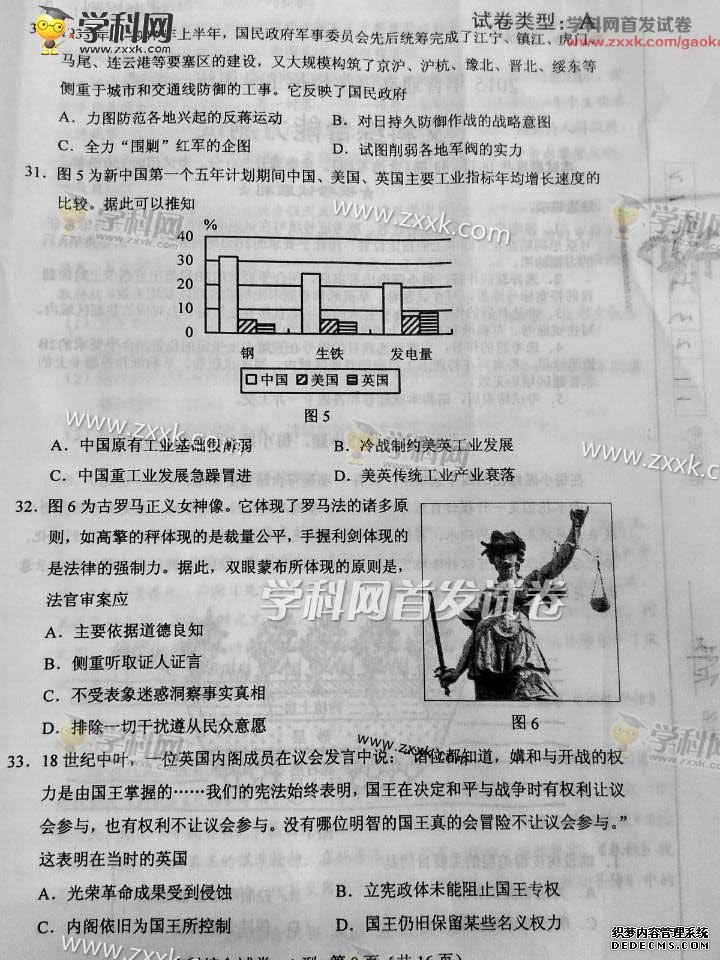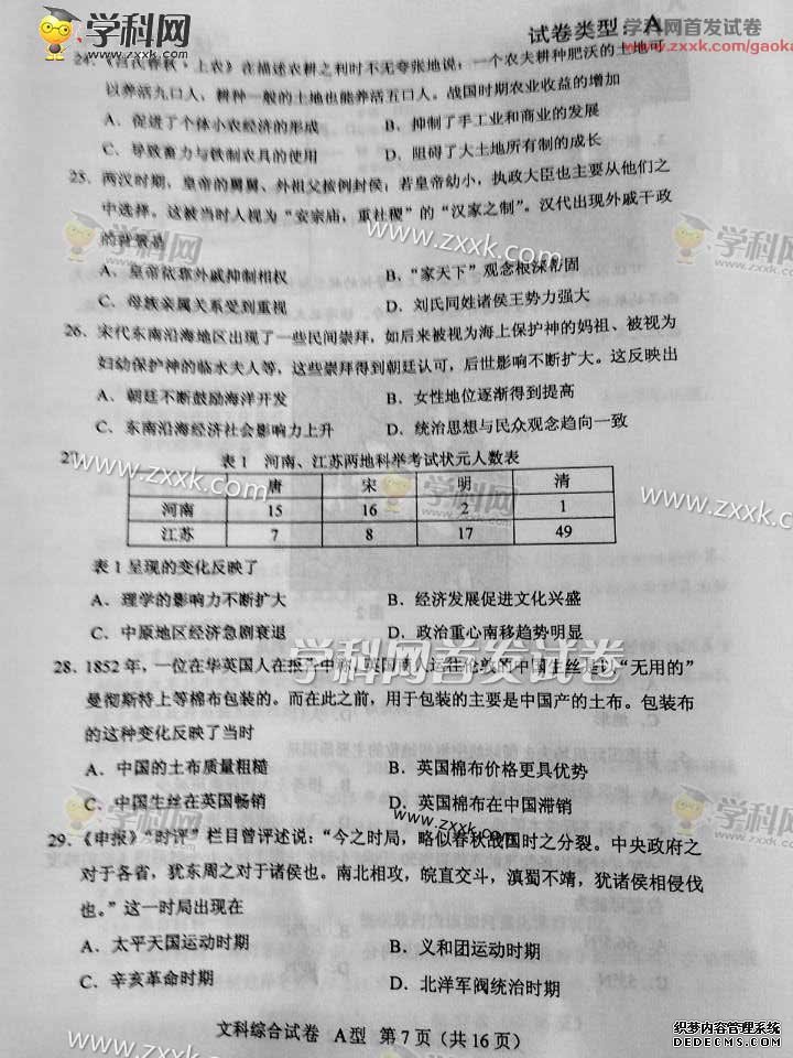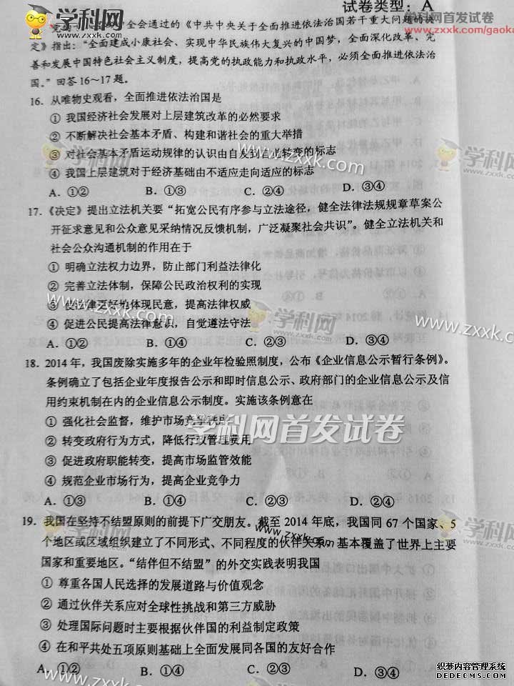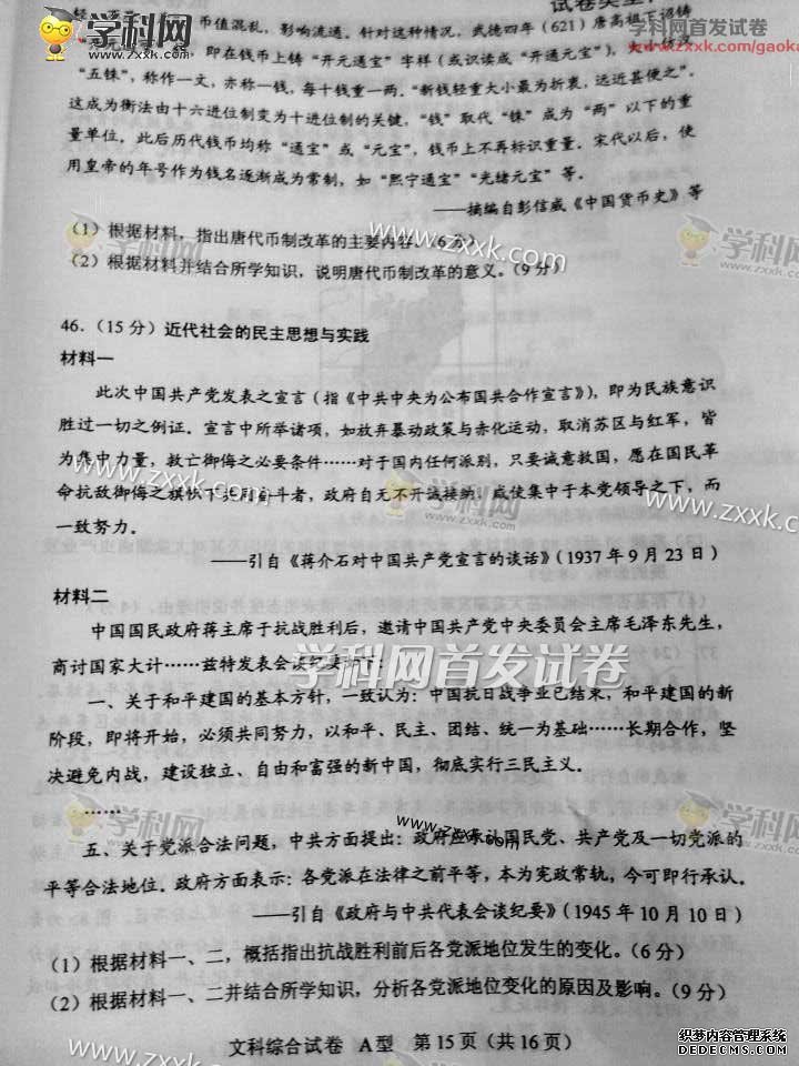 湖北2015年高考文科綜合真題(圖片版)