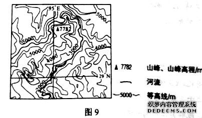 近年來(lái),滑雪、登山、徒步等戶外活動(dòng)漸成一種休閑和時(shí)尚的生活方式。幾位戶外運(yùn)動(dòng)愛(ài)好者擬于8月前往圖9所示區(qū)域進(jìn)行峽谷徒步旅游。