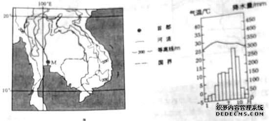 43,(10分)自然災(zāi)害與防治圖10a示意某地區(qū)地形及M城位置,圖10bM城年內(nèi)各月氣溫及降水量。2011年該地區(qū)9、10兩月降水量遠(yuǎn)超常年。M城被水淹80多天,造成嚴(yán)重的經(jīng)濟(jì)損失。