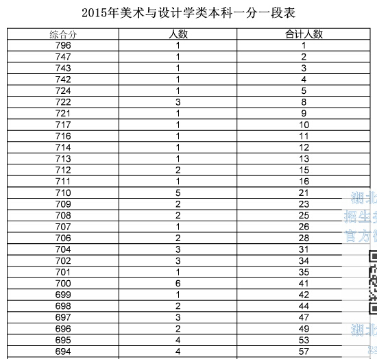 湖北2015年高考美術(shù)與設(shè)計學(xué)類本科一分一段表