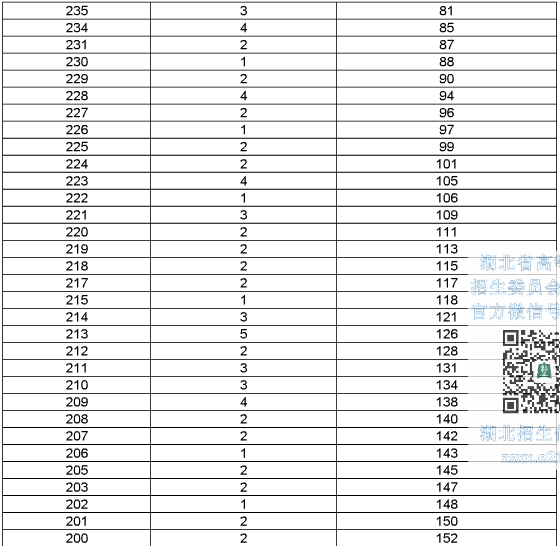 2015年湖北高考總分成績一分一段表