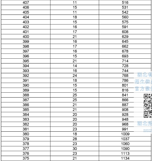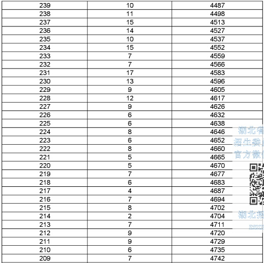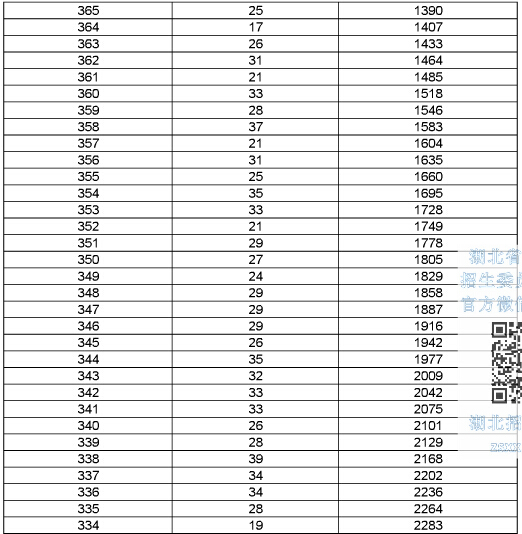 2015年湖北高考總分成績一分一段表