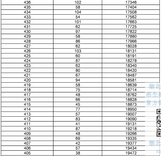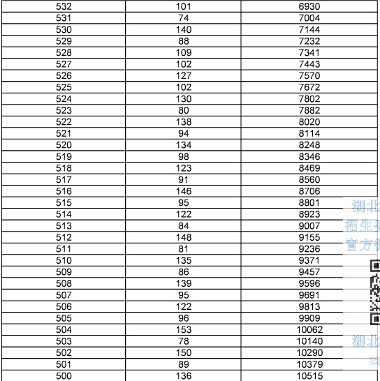 2015年湖北高考總分成績一分一段表