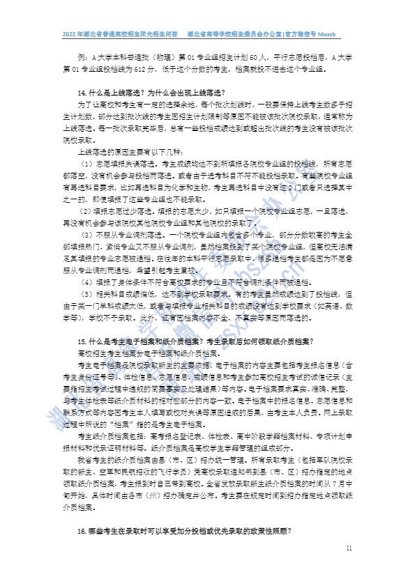 以上就是2022年湖北省普通高校招生陽光招生問答的全部內(nèi)容了,想必大家會有所收獲。