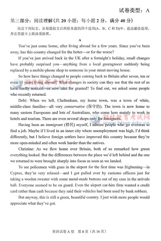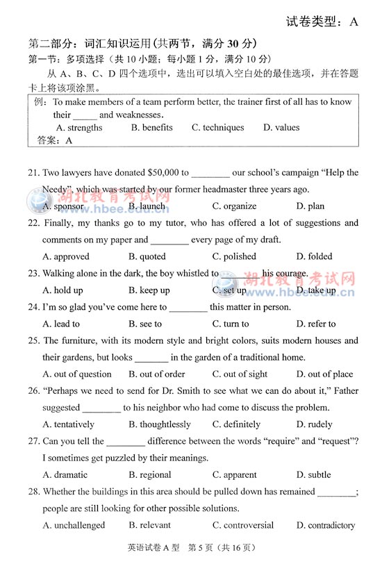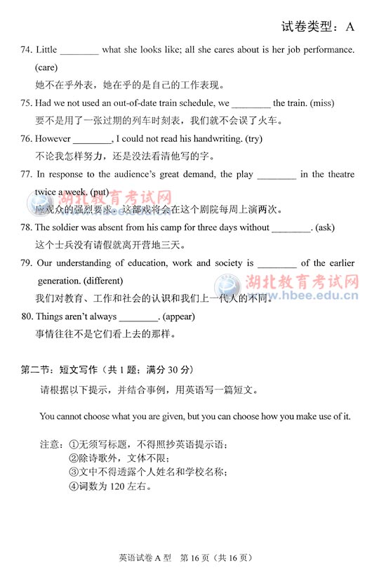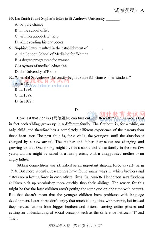 "2012年湖北省高考英語A卷試題" 相關(guān)文章推薦