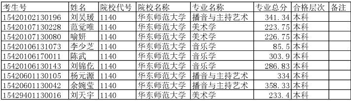 華東師范大學(xué)2015年在湖北省招生藝術(shù)專業(yè)合格考生名單