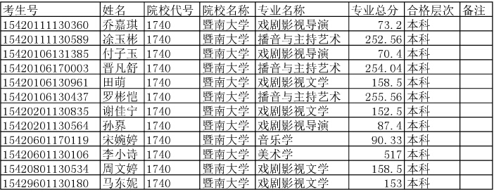 暨南大學(xué)2015年在湖北省招生藝術(shù)專業(yè)合格考生名單