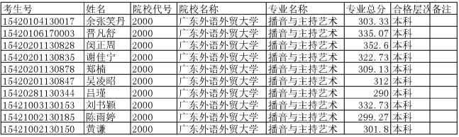 廣東外語(yǔ)外貿(mào)大學(xué)2015年在湖北省招生藝術(shù)專業(yè)合格考生名單