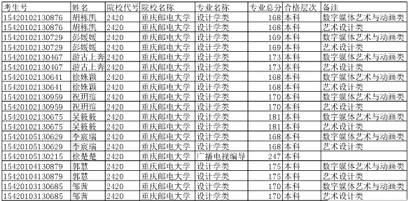 重慶郵電大學(xué)2015年在湖北省招生藝術(shù)專業(yè)合格考生名單