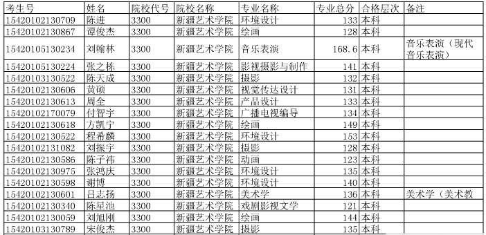新疆藝術(shù)學(xué)院2015年在湖北省招生藝術(shù)專業(yè)合格考生名單