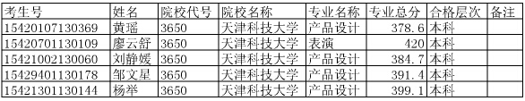 天津科技大學(xué)2015年在湖北省招生藝術(shù)專(zhuān)業(yè)合格考生名單