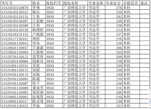 廣西師范大學(xué)2015年在湖北省招生藝術(shù)專業(yè)合格考生名單