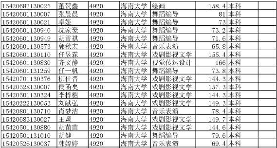 海南大學(xué)2015年在湖北省招生藝術(shù)專業(yè)合格考生名單