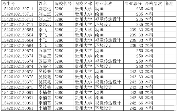 湖北高考網(wǎng)獲悉,2015年貴州大學(xué)在湖北省招生藝術(shù)專業(yè)合格考生名單已公布,詳情如下: