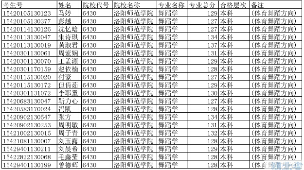 洛陽師范學(xué)院2015年在湖北省招生藝術(shù)專業(yè)合格考生名單