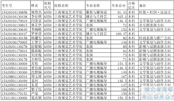 上海視覺藝術(shù)學院2015年在湖北省招生藝術(shù)專業(yè)合格考生名單