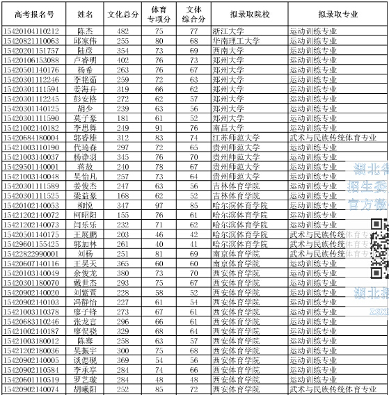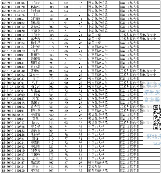 湖北2015年運(yùn)動訓(xùn)練、武術(shù)與民族傳統(tǒng)體育單招錄取考生名單(二)