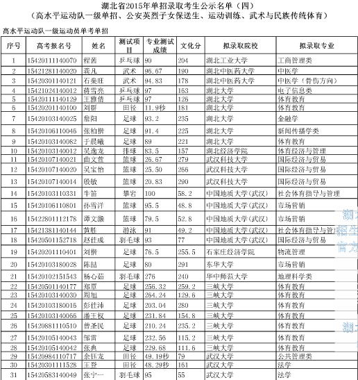 (高水平運動隊一級單招、公安英烈子女保送生、運動訓練、武術與民族傳統(tǒng)體育)