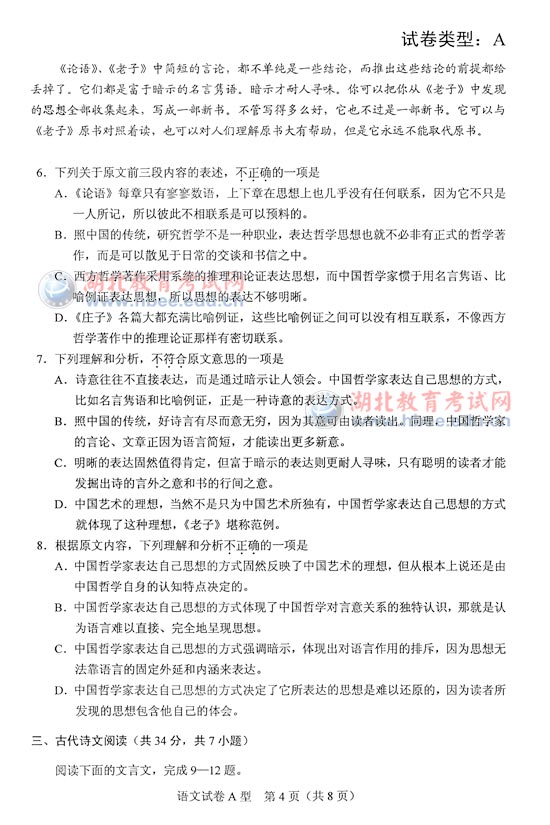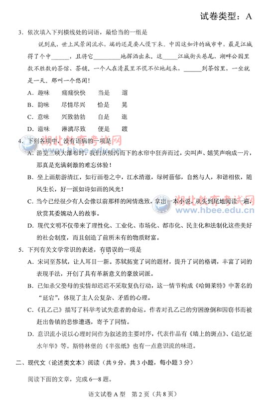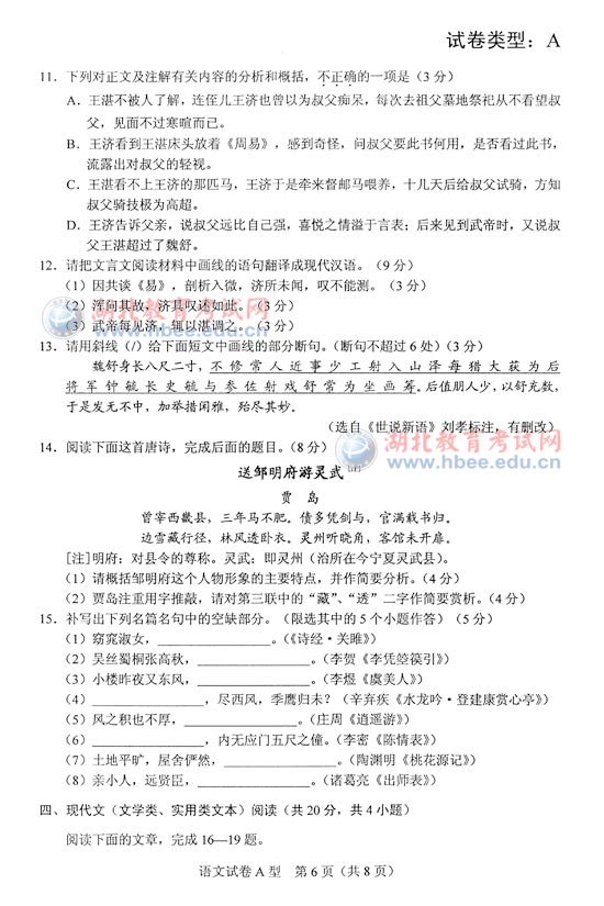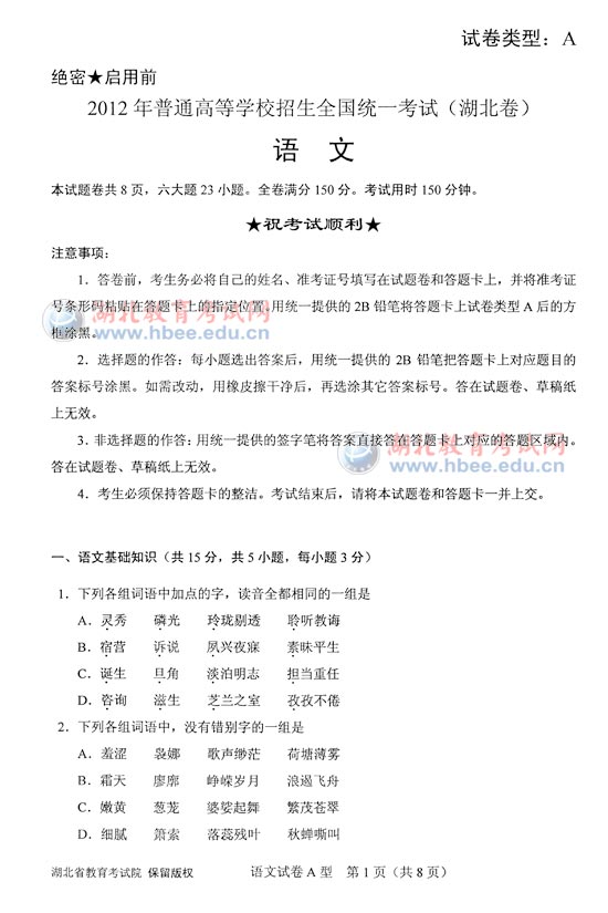 "2012年湖北省高考語(yǔ)文A卷試題" 相關(guān)文章推薦