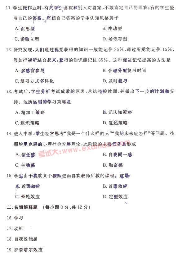 2008年上半年教師資格證中學(xué)心理學(xué)真題(中學(xué))