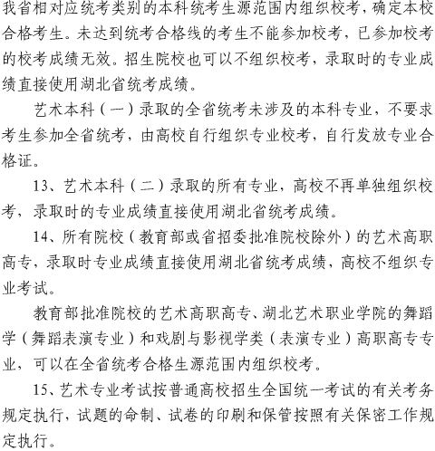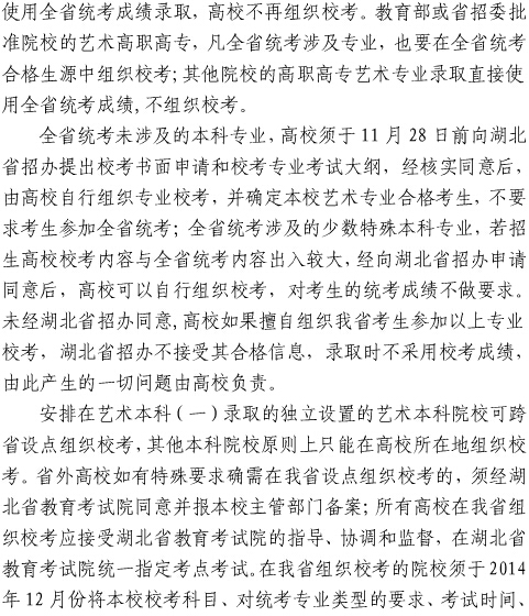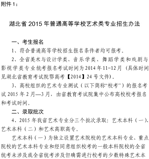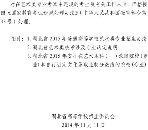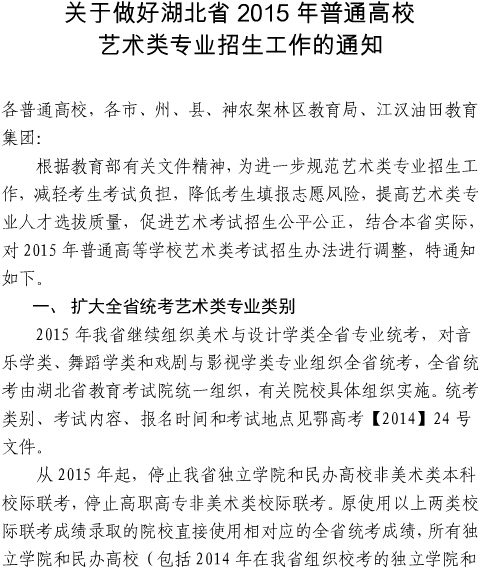 湖北省關(guān)于做好2015年普通高校藝術(shù)類專業(yè)招生通知